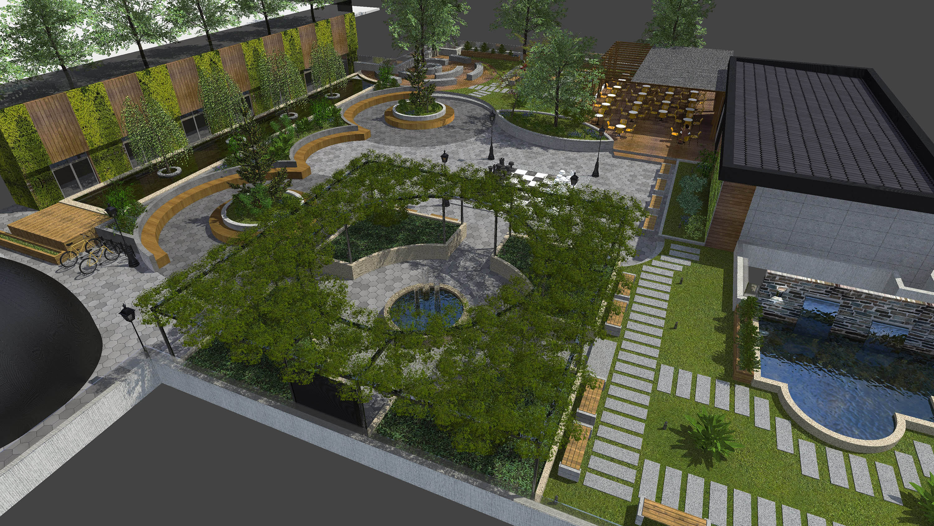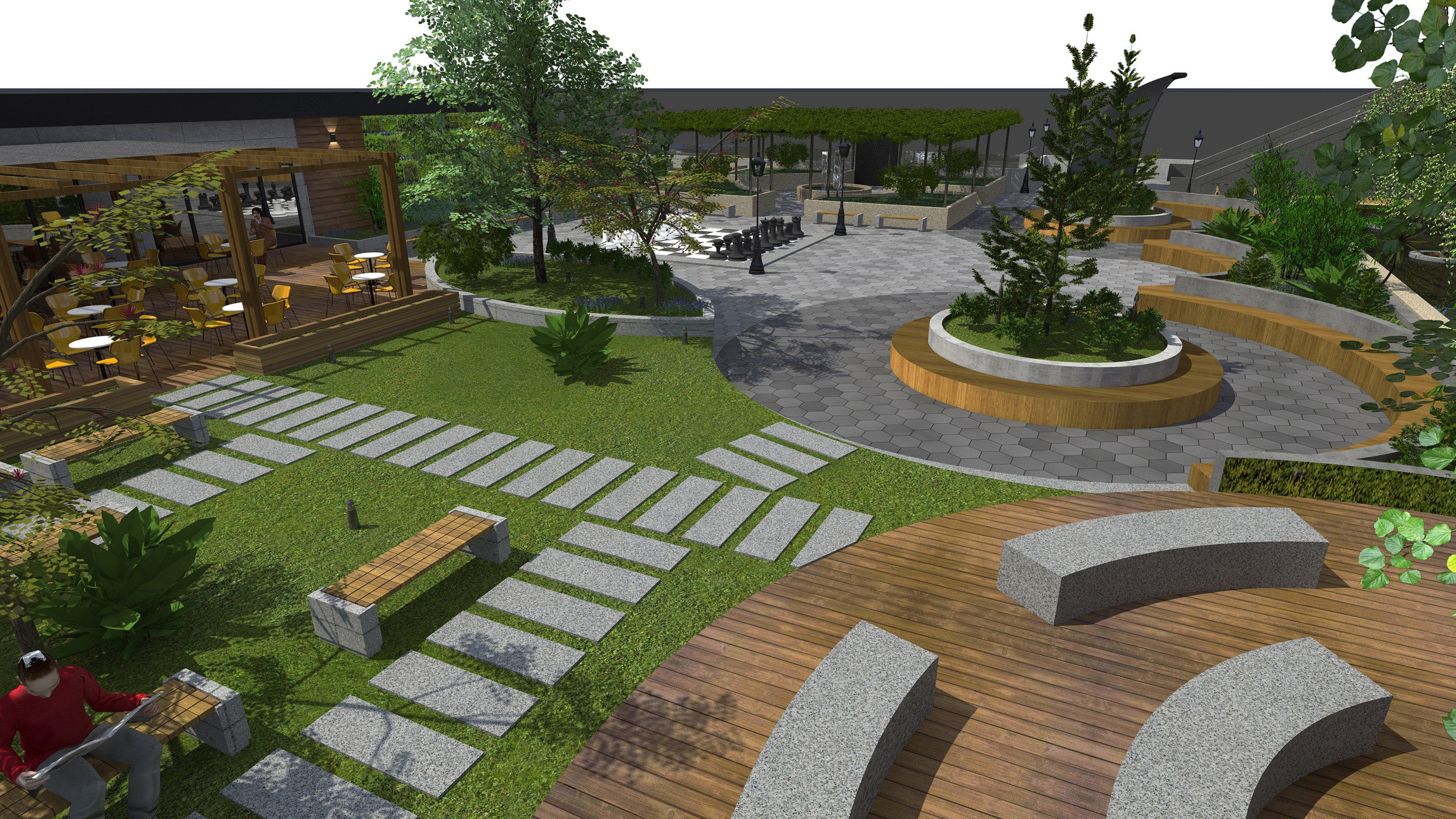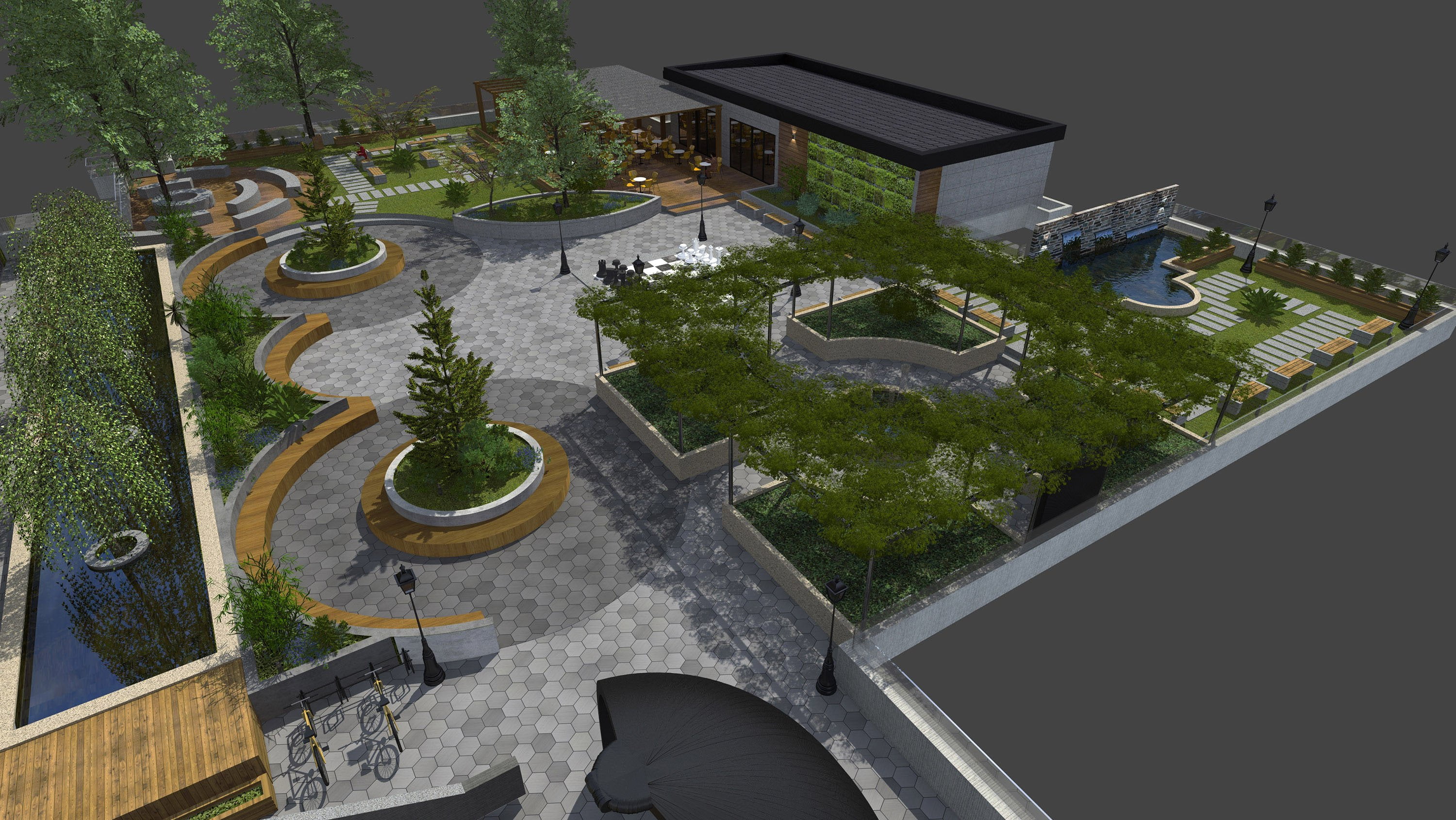 На зелениот покрив со површина од 1.800 квадратни метри ќе бидат засадени 29 висококвалитетни дрвја и повеќе од 30 други видови садници. Ќе бидат поставени неколку водени зони во форма на фонтани и базени, монтажна бина, партерно шаховско поле, кафе-бар, како и модерна урбана опрема од клупи, корпи за отпадоци и паркинзи за велосипеди. Со зазеленувањето на покривот на ГТЦ, делумно ќе се надомести загубеното зеленило во Малиот ринг коешто до 2017 година претрпе загуби повеќе од 30% од вкупната површина на крошните на дрвјата кои беа засадени во овој дел на градот.