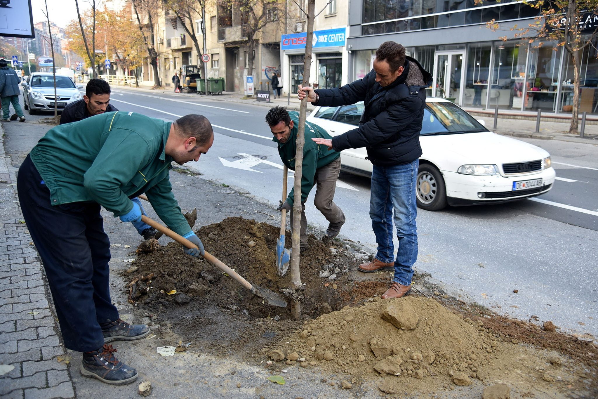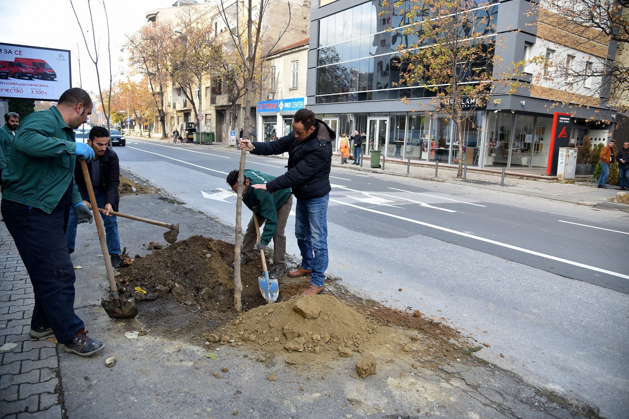 Ги заменуваме 40 исечени и паднати дрвја со нови здрави висококвалитетни садници, односно со ист вид дрвја како што претходно имало во овој дрворед, и засадуваме 33 садници од видот јавор и 7 садници каталпа. Приоритет е обновување на сите постојни дрвореди во центарот на градот и подигање нови во Ѓорче Петров и на Бит-пазар. Во Скопје по должината на градските сообраќајници и во средишните жардиниери на булеварите има речиси 500 пенушки кои ќе бидат отстранети и на нивно место ќе се засадат нови здрави садници – истакна Шилегов.